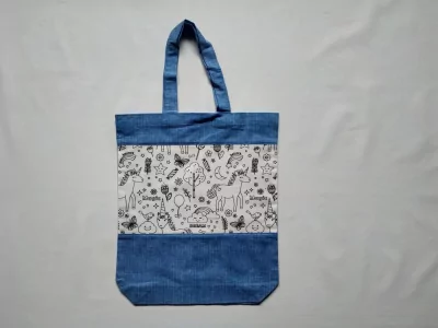 Dětská taška s vsadkou z vybarvovací látky. S dlouhým uchem rozměr 33x30cm /svislý pruh/. S krátkým uchem 32x42cm /vodorovný pruh/. Základ tašky modrý melír, nebo bílý puntík na červeném podkladu. Na přání můžeme ušít i s jiným základem například viz sada Kočičí ráj. Doporučená teplota praní 40°C. Důležité upozornění : před vybarvováním vložit dovnitř tašky např. karton, aby nedošlo k probarvení i na zadní stranu! Další údržba dle instrukcí na vybarvovacích barvách na textilie. Barvu základu, nebo jiné přání uveďte prosím do poznámky :)